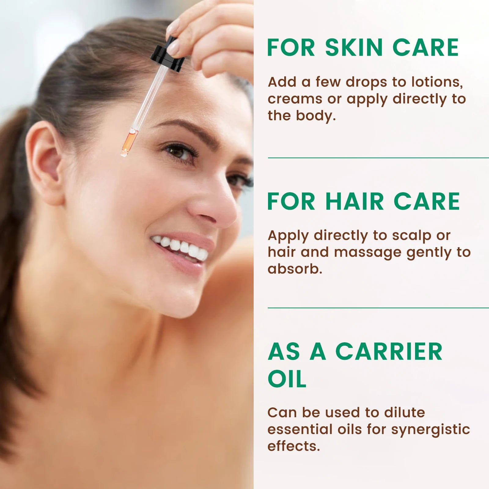 • ✔ Applicare poche gocce direttamente sulla pelle detersa, massaggiando fino a completo assorbimento.